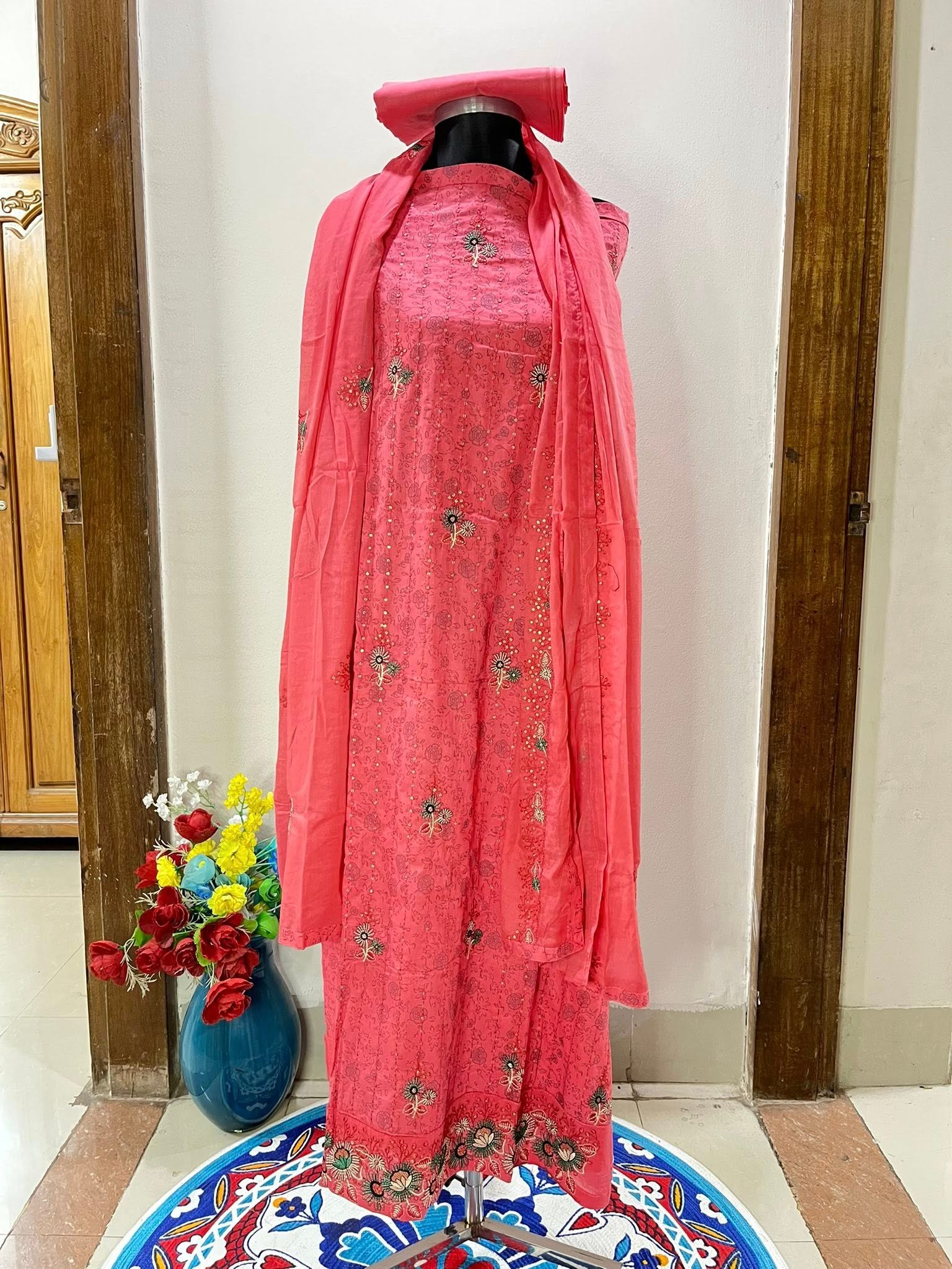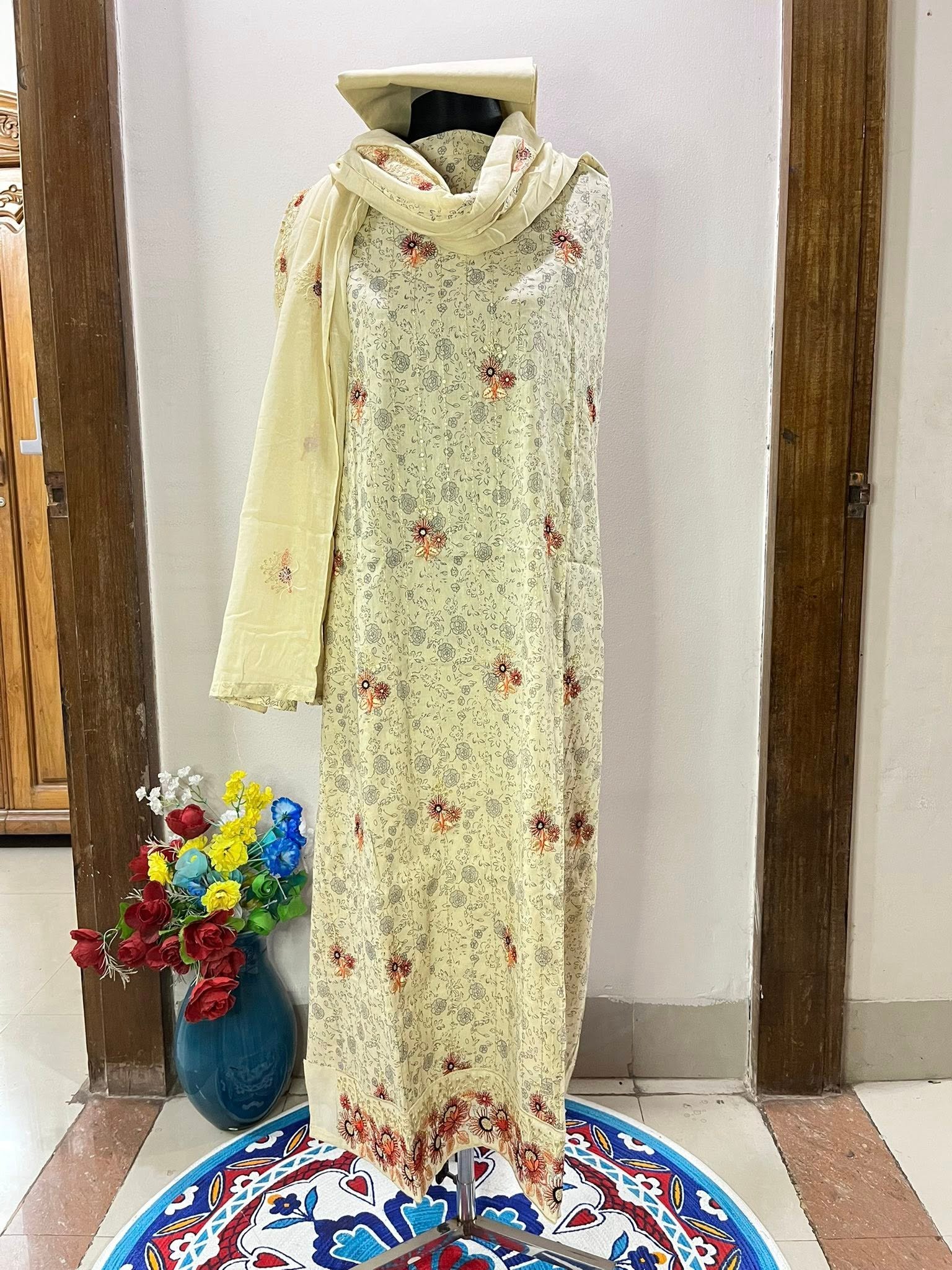 ওড়না : ছোট ছোট ফুলের এমব্রয়ডারি কাজ করা,